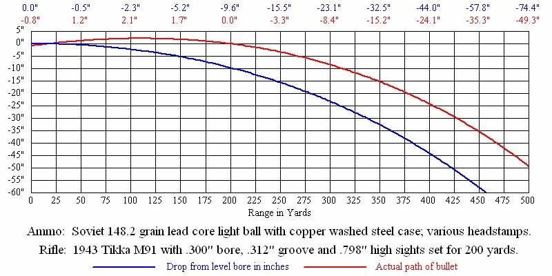 | Distance (yds) | 0 | 50 | 100 | 150 | 200 | 250 | 300 | 350 | 400 | 450 | 500 |