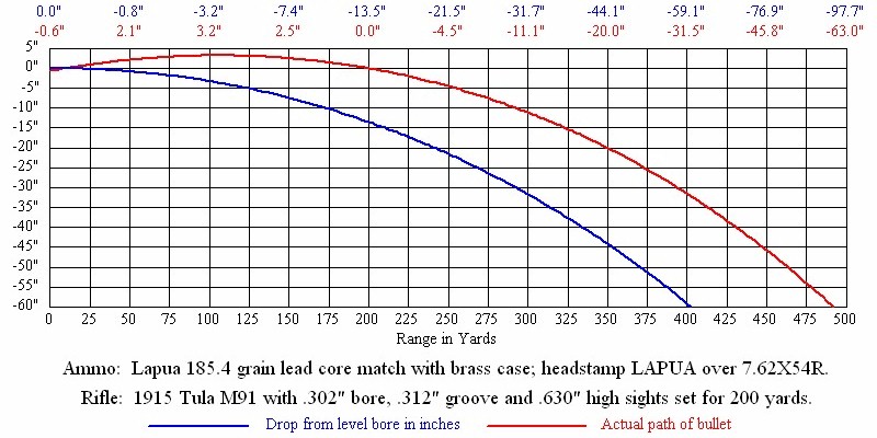 | Distance (yds) | 0 | 50 | 100 | 150 | 200 | 250 | 300 | 350 | 400 | 450 | 500 |