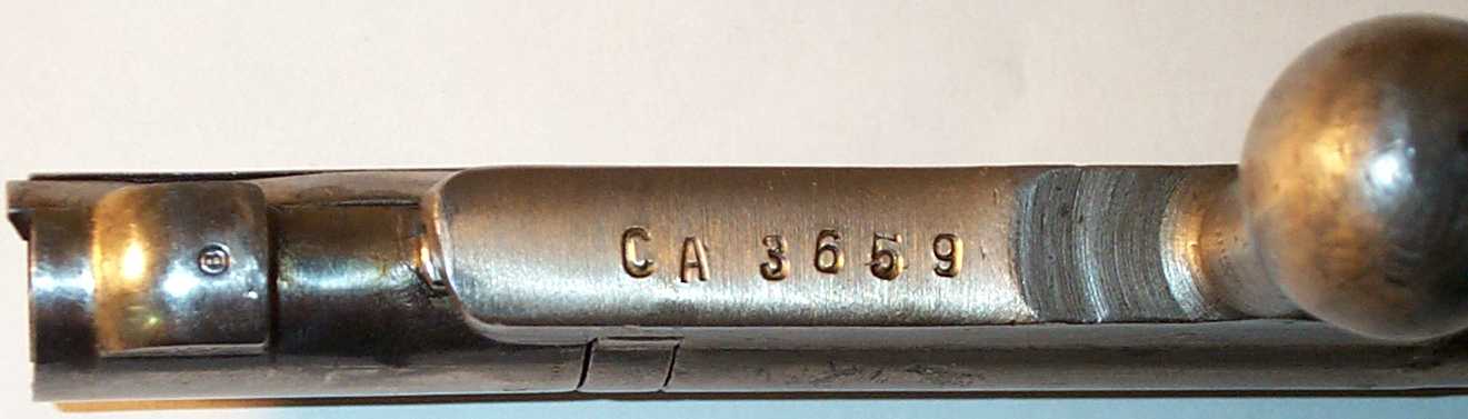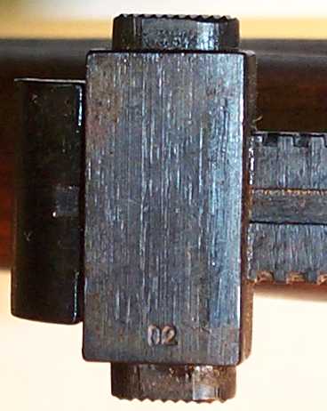 page. The extra notch forward of the stripper clip guide is also missing like the Izhevsk war time receiver production. The tang is dated 1951 and has the 02 country code. The recoil lug bears the "circle B" for the Budapest arsenal. The front of the receiver has no inner barrel bearing surface which is a feature of all WWII and later Mosin Nagants. The trigger is marked "circle B" on one side and "02" on the other. It is of typical Russian design with no modifications. The bolt on this example appears to be of Soviet origin or possibly Romanian, although the serial number matches the rifle and has an alpha prefix that is unique to Hungary. The cocking knob mark is poor and could be Izhevsk or Romanian as the two are similar. The bolt head itself is cleary marked with "02" in two places and a "circle B". The extractor is "02" marked, the interrupter/ejector is "02" and "circle B" marked, and the interrupter/ejector spring is "circle B" marked. The marking of smaller parts continues with the sights which have an "02" on the rear base, rear slide and front globe. The barrel bands and front barrel band spring are likewise marked with "02". No mark is evident on the rear barrel band spring. The stock has an oil type finish and a distinctive grain to the wood. This example does not have the typical "02" and "circle B" as found on Hungarian M44s and other Hungarian M91/30s. However, it does have a "circle 7". This type of mark with different numbers is a typical Hungarian stock mark. The sling is also "02" marked. Continuing with the Hungarian practice of marking every possible part, the "02" is also found on the nose cap, cleaning rod, and floorplate, where it is joined by a "circle B".